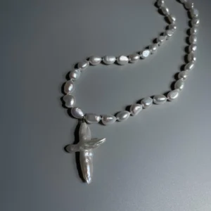 Wearing this necklace is more than a fashion statement; it’s a personal reflection of values. It reminds the wearer of resilience, serenity, and the quiet strength that comes from within. The combination of cross and pearls creates a symbolic harmony that reflects both inner grace and divine connection.